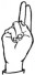 На ћирилици написано АНТОНИНА ШОГОЉАЦ састоји се из 15 слова [?]. Исписано ћириличном једноручном азбуком за глувонеме: